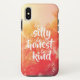 Trendy und Retro, dieser orange-rosa Palmen Hintergrund mit dem Zitat "Be Albern Be Honest Be Kind" von Ralph Waldo Emerson ist der perfekte Weg, um Ihr Gerät zu schützen und zu stilisieren. Mit dem hellen Farbfilter über einem Bild von Palmen im Hintergrund mit weißem Typografie Zitat sorgt ein Strand für Spaß in der Sonne.