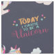 Ein niedliches und schönes Muster mit bezaubernden Einhörnern mit Regenbogenmane und Schwanz, lächelnden Wolken, bunten Sternen, mit der inspirierend Beschriftung "Heute wähle ich mich für ein Einhorn"