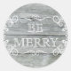 Ein elegantes und stilvolles Weihnachtsaufkleber-Siegel mit grauem Holzkornhintergrund. Die rustikalen Siegel haben die Worte SEIN MERRY mit einem weißen blühte.