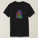 Dieses lebendige T - Shirt-Design enthält den Text "Be Your Hero" in einem Comic-Buch-Explosion-Stil. Jedes Wort bricht mit einer anderen kühnen Farbe aus und schafft so ein kraftvolles und auffälliges Aussehen.