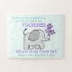 Gingham Elefant mit einem Puzzle aus Blume, der die Frage zum Pop stellt. Werden Sie unsere Blume? Eine lustige Art, ein kleines Mädchen in deinem Leben fragen, um deine Blume zu sein.