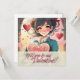 Farbenfrohe Manga Valentine's Karte mit einem hübschen Mädchen, das ein rotes Herz hält und von süßen Details gerahmt ist. Die Vorderseite zeigt einen bezaubernden "Werden Sie mein Valentin sein?" in spielerischen Buchstaben. Eine herzliche Geste voller Liebe und Charme.