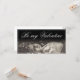 "Be My Valentine - Lying Young Woman" zeigt eine junge Frau, die entspannt auf einer Wiese liegt, umgeben von Blume. Die Szene ist in sanften Sepiatönen gehalten und verleiht dem Bild einen nostalgischen und romantischen Charakter. Die Schrift "Be My Valentine" in einem eleganten Schriftart rundet das Design ab und vermittelt eine zarte Botschaft der Liebe.