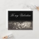 "Be My Valentine - Lying Young Woman" zeigt eine junge Frau, die entspannt auf einer Wiese liegt, umgeben von Blume. Die Szene ist in sanften Sepiatönen gehalten und verleiht dem Bild einen nostalgischen und romantischen Charakter. Die Schrift "Be My Valentine" in einem eleganten Schriftart rundet das Design ab und vermittelt eine zarte Botschaft der Liebe.
