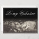 "Be My Valentine - Lying Young Woman" zeigt eine junge Frau, die entspannt auf einer Wiese liegt, umgeben von Blume. Die Szene ist in sanften Sepiatönen gehalten und verleiht dem Bild einen nostalgischen und romantischen Charakter. Die Schrift "Be My Valentine" in einem eleganten Schriftart rundet das Design ab und vermittelt eine zarte Botschaft der Liebe.