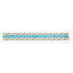 Dieses Band zeichnet sich durch ein Muster aus kleinen Donuts mit pastellfarbenem Eis und Sprinklen aus. Die hellblaue Band in der Mitte liest "donut care, be happy!" im weißen Schriftart.