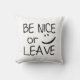 Seien Sie Nizza oder verlassen Sie - lustiges Kissen