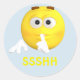 Das klassische gelbe emoji "ist ruhiger" Cartoongesichtsausdruck Emoticon mit den Buchstaben SSSHH. Heben Sie einige dieser Qualitätsaufkleber heute auf!