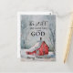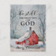 Die Weihnachtspostkarte mit Inspirationsurteil zeigt eine einfache winterfarbene Szene mit Schnee, die auf ein von Bäumen umgebenes rotes Haus fällt. Es enthält Bibel Verse Psalm 46:10, "Sei still und weiß, dass ich Gott bin." Die Hinterschrift Luke 2:14, "Ruhm Gott im höchsten, und auf Erden Frieden, guter Wille gegenüber den Menschen." Die Karte kann für viele Anlässe angepasst und genutzt werden. -