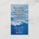Die Visitenkarte der Kirche zeigt den blauen Himmel und die weißen Wolken. Es zeigt Ihnen Event-Informationen und Bibel Verse Psalm 46:10, "Sei still und weiß, dass ich Gott bin". Die Kirchendetails sind auf der Rückseite aufgelistet.