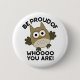 Seien Sie stolz darauf, wer Sie lustige Eule-Puppe Button