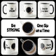 Seien Sie STRONG One Sip at a Time mit einer Tasse schwarzen Kaffees auf dieser schwarz-weißen Tasse. Diese Tasse ist eine inspirierende Erinnerung, jeden Morgen STRONG zu sein. Es ist das perfekte Geschenk für einen Kaffeeliebhaber.