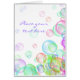 Wenn Sie ein Geschäft haben, das mit Kindern zu tun hat, oder wenn Sie duftende Seife herstellen, oder wenn Sie einfach Seifenblasen Liebe machen, ist das das Design für Sie. Es ist eine fröhliche und dynamische Abbildung von Seifenblasen mit allen Farben des Regenbogens in der Luft schwebend. Wählen Sie diese bunten Blasen für Ihre Arbeitsmittel, um eine fröhliche Atmosphäre um Sie herum und mit denen Sie arbeiten zu schaffen.