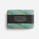 Eine Seifenverpackung mit einem türkisfarbenen Muster mit goldenen Imitaten.