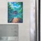 Step into a world of breathtaking tranquillity with this vibrant, anime-inspired Japanese landscape art print. This stunning piece captures a picturesque wooden pagoda nestled over a sparkling, azure lake, surrounded by a lush, emerald forest.
