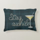 Wörter "bleibe mal" im kursiven Design auf texturiertem Aqua und schwarzem kariertem Hintergrund mit Martini Cocktail. Text ist in einem nautischen Seil-Design.