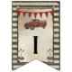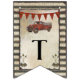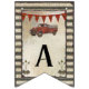 Flaggenwimpelfahne mit dem Text, "es ist ein Junge!" für ein rustikales Bauernhofart-Babypartythema. Einen Vintagen roten LKW kennzeichnend, kombinieren Windmühle, Pfeile und gewellte verrostete Stahlplatten für einen Spaß, ALLEN JUNGEN-Art-Babyduschendekor und Einladungs-Set. Hand entworfen von Audrey Jeanne Roberts mit einem kompletten Set zum Match.