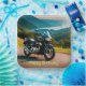 Die Teller der Geburtstagszeitung verfügen über ein Motorrad vor einem wunderschönen natürlichen Hintergrund.