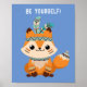 Niedlicher indischer Fuchs mit blauem Hintergrund fordert Kinder auf, "SEIEN SIE SICH SELBST!" oder Ihre personalisierte Botschaft zu vermitteln. Großartige Zimmerdekoration.