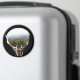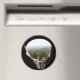 Ein digitales Gemälde eines Bucks Kopf mit Blick auf baumbedeckte Hügel und Berge zwischen seinen Geweihten. Dieses Bild hat keinen Hintergrund, Sie können eine andere Hintergrundfarbe wählen.