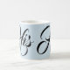 Herr in Skript auf einem hellblauen Hintergrund. Mann und Klasse auf einmal.