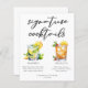 Dieses auf Seine & Hers rum basierende Cocktails-Menü bietet eine einfache schwarze Typografie über 2 Ihrer Lieblingsgetränke und deren Zutaten für Ihre Hochzeitsfeier an der Küste. Ein schicker Mojito und Mai Tai zeichnend ergänzen Ihr Bar-Menü um einen lustigen Flair. Füllen Sie bitte die Namen des Paares und das Datum für seinen Empfang aus.
