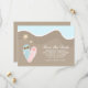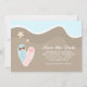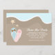 Hochzeiten speichern Sie das Datum Ankündigungen oder Einladungen mit einer schönen Vektor-Abbildung von Paaren rosa und blau gedreht Flop Sandalen auf einem Sandstrand am Meer mit ein paar Seestern. Ideal für Ihren Strand, tropische Destination oder Sommerhochzeit.