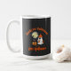 Ein lustiges und lustiges Halloween-Design mit einem Geist in einer Mütze, einer schwarzen Katze, Kürbissen, Fledermäusen und Vollmond. Ideal für jeden, der das ganze Jahr zu Halloween gewartet wird!