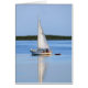 "Side by Side Sailboats, Key Largo, Florida" von Catherine Sherman. Unter einem klaren, blauen Himmel segeln zwei kleine Segelboote nebeneinander auf der glatten Oberfläche des Tarpon-Beckens vor Key Largo in den Florida Keys. Die beiden Segel werden auf der glänzenden Oberfläche reflektiert.