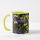 Seite der Lila und gelben Stiefmütterchen Tasse