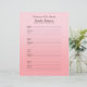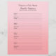Diese 8,5" x 11" Füllseite, mit einem hellrosa Farbverlauf (leichter bis dunkler) mit schwarzer Schrift, ist personalisiert und perfekt zum füllen binderartiger Gedenkbücher oder Gästebuche. Dieses Einfüllpapier ist einfach zu personalisieren - geben Sie Ihre eigene Meinung an, ändern Sie den Namen und löschen oder ändern Sie Daten. Seite ist vorformatiert, damit die Teilnehmer ihre Kontaktinformationen und eine Nachricht beim Anmelden hinzufügen können, 4 Namen pro Seite. Sie müssen Löcher durchstechen, um auf Ihren Binder zu passen. Alle Rechte vorbehalten © 2014 Alan & Marcia Socolik