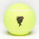 Diese Tennisbälle haben das Seitenprofil einer Büste einer Viktorianischen Dame aus schwarzer Silhouette mit einem extravaganten Hut mit rosa Akzenten.