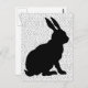 Diese Postkarte ist weiß mit schwarzen Polka-Punkten und dem Seitenprofil eines schwarz sitzenden Hasen.