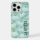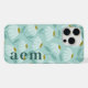 Seitige Monogramm-Initialen Türkis-Blau-Blumenmust iPhone Hülle