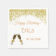 Ideal für ein Geburtstagsfest! Eleganter goldener Glitzer, mit einer glänzenden Champagnerbrille. Geben Sie einfach den Namen und das Geburtsdatum der Person ein.