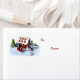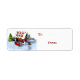 Dieses Design besticht durch ein illustriertes Gingerbrot-Haus mit Bonbons und Keksen, einen Schneemann, schneebedeckte Bäume und einen Schlitten voller Geschenke.