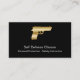 Selbstverteidigung-Visitenkarte, die Sie mit Seitenentwurf starke zwei besonders anfertigen können, der mit.einschließt eine simulierte Goldpistole zusammen mit Textplan umfaßt, Sie personifizieren können. Entworfen für eine Handgewehrsicherheits- oder -Selbstverteidigungschule oder Waffengeschäft.
