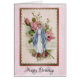 Schönes Vintages katholisches Bild der gesegneten Jungfrau Mary mit rosa Rosen.