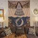 Selkie Tapestry. Viele der Volksmärchen auf Selkie wurden von den Nordinseln (Orkney und Shetland) gesammelt. Die Volkssagen drehen sich häufig darum, dass weibliche Selkies (Siegel-Frauen) von jemandem, der ihre Sealhaut gestohlen und versteckt, in Beziehungen mit Menschen getrieben werden. Eine typische Volksgeschichte ist die eines Mannes, der eine weibliche Haut stiehlt, sie am Meeresufer findet und sie zwingt, seine Ehefrau zu werden. Sie wird ihre Zeit in Gefangenschaft verbringen und sich nach dem Meer sehnen, ihre wahre Zuhause, und oft wird man sehen, wie sie sehnsüchtig auf den Ozean blickt. Sobald sie ihren selkie Mantel gefunden hat, kann sie ins Meer zurückkehren, wo sie wirklich hingehört. SYMBOLS IN DIESER TAPESTRIE: In diesem Wandteppich findet sich eine Frau, die ihre Zuhause gerade an Land verlassen hat, nachdem sie ihre selkie Haut gefunden hat. Die Farben des Landes sind stumpf und symbolisieren, wie ihr Leben an Land nicht wahr ist, wer sie ist, während das Meer bunt und lebendig ist, wo sie wirklich hingehört. Der einzige Teil dieses Wandteppichs, der nicht viel Details hat, ist das Ufer, an dem sie steht. Das soll symbolisieren, wie sie sich auf neutralem Land verändern wird. Wenn wir das Bedürfnis oder den woll empfinden, unseren Lauf im Leben zu verändern, glaube ich, dass es immer am besten ist, es von einem neutralen Ort aus zu tun, nicht von einem, der von extremen Emotionen bestimmt wird, die unser Urteilsvermögen und unser Herz von wahrem Verlangen beflecken können. Die selkie Folktale erinnert mich immer daran, dass wir der Berufung in uns selbst folgen sollten, was auch immer sie sein mag. Nur durch Neugierde und Vertrauen in diese Berufung können wir zu dem werden, was wir immer sein sollten. Lass niemanden, der deine Haut von dir behalte - finde sie und wandle sie in dein höchstes Selbst um.