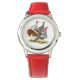 Kinderuhr aus Edelstahl mit rotem Lederarmband