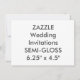 Individuelle SEMI-GLOSS Hochzeitseinladungen - 6.25" x 4.5". Ein dünnes, glänzendes, glänzendes Papier, das für den Foto-Druck mit optimaler Farbwiedergabe konzipiert ist und sich ideal für den vollfarbigen Druck eignet. 40 % Inhalt nach dem Endverbraucher (gerecycelt). 110lb, 12,5 Punkte dicke Karte. HERGESTELLT IN DEN USA Big Bulk kauft mehrere Rabatt Einsparungen auf Einladungskarten, bis zu 50% Rabatt auf Ihre Einkäufe bei Mehrfachbestellungen. Zazzle Wedding Einladungen - Erstellen, gestalten, gestalten Sie Ihre eigenen individuellen Hochzeitseinladungen aus diesem vollständig anpassbaren, personalisierten Zazzle Einladungskarten-Designvorlage leer. Hochwertiger Vollfarbendruck auf beiden Seiten mit Standard- oder HIGH-DEFINITION-Druckoptionen. Größenoptionen: 5" x 7", 4,25" x 5,5", 3,5" x 5", 4" x 9,25", 5,25" x 5,25", 4,5" x 6,25", 5,5" x 7,5", 6,5" x 8,75". Orientierungsoptionen: Vertikal (Portrait) oder horizontal (Landschaft). Endliche Optionen: Halbglanz, matt, extrem dick, Oberleder, Linen, Kolumne, Felt Weiß, Felt Ecru, Kraft, Perlschimmer, Champagner Shimmer & Metallic Silver. Kartenform & Stiloptionen: Standard- oder abgerundete Ecken (alle Größen); Klammer, skaliert, Ticket oder Tag (nur 5" x 7"); Rundschreiben (nur 5,25"). Weiße Standardumschläge mit Upgrade-Optionen inklusive. Ideal für Hochzeitsfeiern, Bachelorette, Brautparty, Probe-Dinner, Save the Date etc., für alle UAWG, wie Jubiläum, Geburtstag, 16 . Geburtstag und Quincenera; oder für Firmenveranstaltungen & Ausstellungen lädt - zum Foto, Image, Text, Braut & Bräutigam oder für Ihre eigene personalisierte Designgestaltung ein.