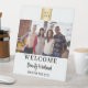 Ein weißer Hintergrund. Personalisieren und hinzufügen Sie Ihr Unternehmen, Firmenlogo, ein Foto, Text, Zimmernummer. Schwarzer Text.