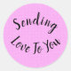 Siegel Sie Ihre Grußkarte mit einem Umschlag Aufkleber. Dieser hat eine Nachricht, die "Liebe an Sie senden" heißt. Der Text ist anpassbar, sodass Sie den Text nach Belieben ändern oder einen Namen hinzufügen können.