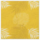 Erdgelbe Stoffe mit Senf und Blätter aus weißen tropischen Palmen
