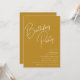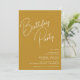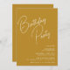 Moderne minimale Geburtstagseinladungen mit "Birthday Party" in einem handgeschriebenen Schriftart. Weißer Text auf goldgelbem Hintergrund. Lässige Geburtstagsparty lädt ein, die auf jedes Alter umgestellt werden können.