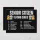 Sie suchen ein einzigartiges und humorvolles Geschenk für Senioren in Ihrem Leben? Schauen Sie sich nur die Postkarte unseres Senioren-gesimst Codes an! Es ist der perfekte Weg, sich über die Kämpfe des simsend lustig zu machen und gleichzeitig die Freuden des bleibe Verbundensein zu feiern. Mit cleveren und witzigen Codes wie 'ATD - At The Doctor' und 'BTW - Bring den Rollstuhl' wird diese Postkarte jedem ein Lächeln auf das Gesicht legen. Und mit seinen langlebigen Materialien und seinem auffälligen Design ist es der perfekte Sake für einen 90., 80., 70. oder 60. Geburtstag. Gönnen Sie sich Lachen und Kommunikation mit unserer Senior-sims-Postkarte!