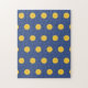 Synura ist eine Single- und Mikroskopalge, oft goldbraun bis goldbraun, die sich in Süßwasserbecken, Seen und langsam fließenden Flüssen oder Bächen in sphärische Kolonien verwandelt. Dieses Design zeigt Kolonien dieser hübschen, manchmal schmelzen, kleinen Plankton als ein Polka-Punktmuster auf einem matten blauen Hintergrund.