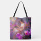 Ein von der künstlerischen Intelligenz generiertes Bild einer schönen Frau, umgeben von rosa und violetten Blumen