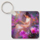 Ein von der künstlerischen Intelligenz generiertes Bild einer schönen Frau, umgeben von rosa und violetten Blumen
