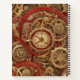 Una bailarina de danza del vientre steampunk con un traje rojo que combina la pasión y la tecnología.